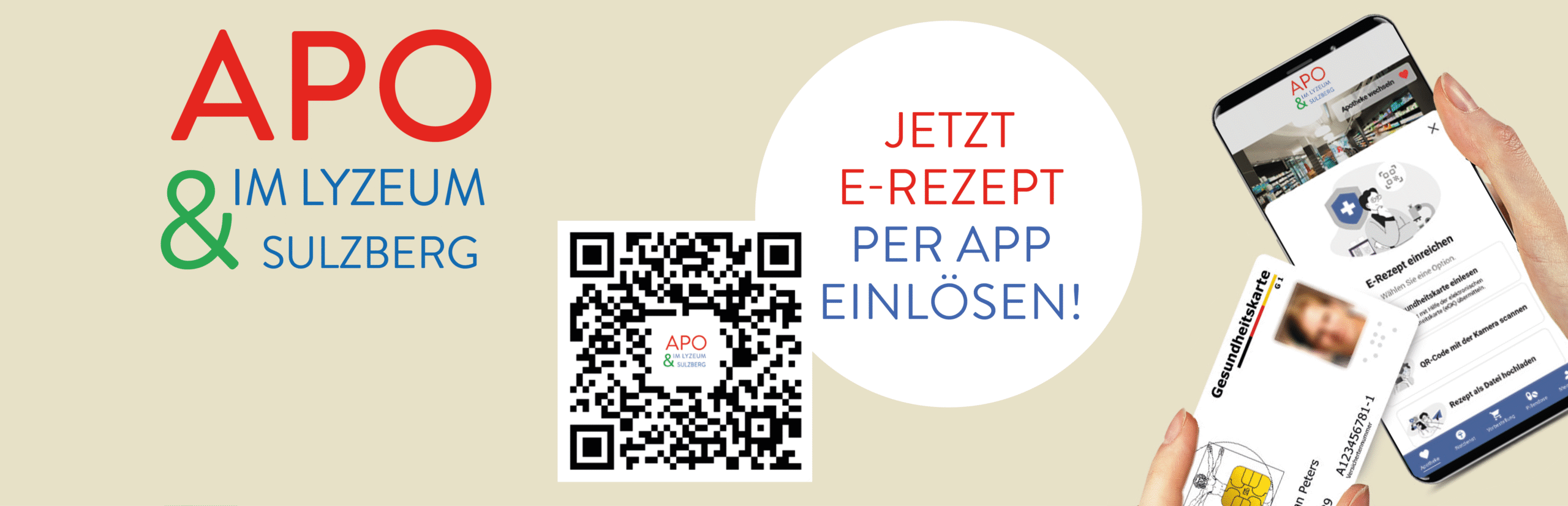 Mit Ihrer elektronischen Gesundheitskarte (eGK) oder einem ausgedruckten QR-Code von Ihrer Arztpraxis können wir Ihr E-Rezept direkt in der Apotheke im Lyzeum abrufen und einlösen.